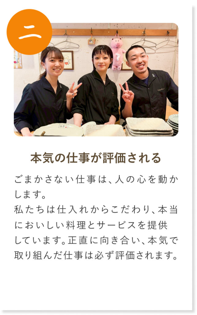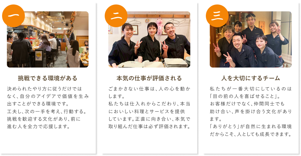 だからこそ私たちは、働き方や環境を少しずつ変えながら、飲食の魅力を伝えていきたいと考えています。