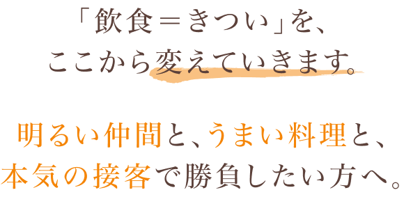だからこそ私たちは、働き方や環境を少しずつ変えながら、飲食の魅力を伝えて