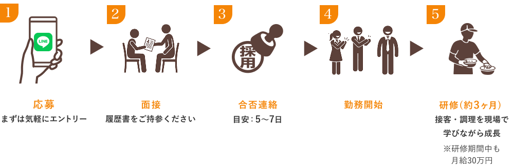 | 求める人物像 | 明るい/主体的/人と関わるのが好き/ 料理が好き/前向きに成長したい |